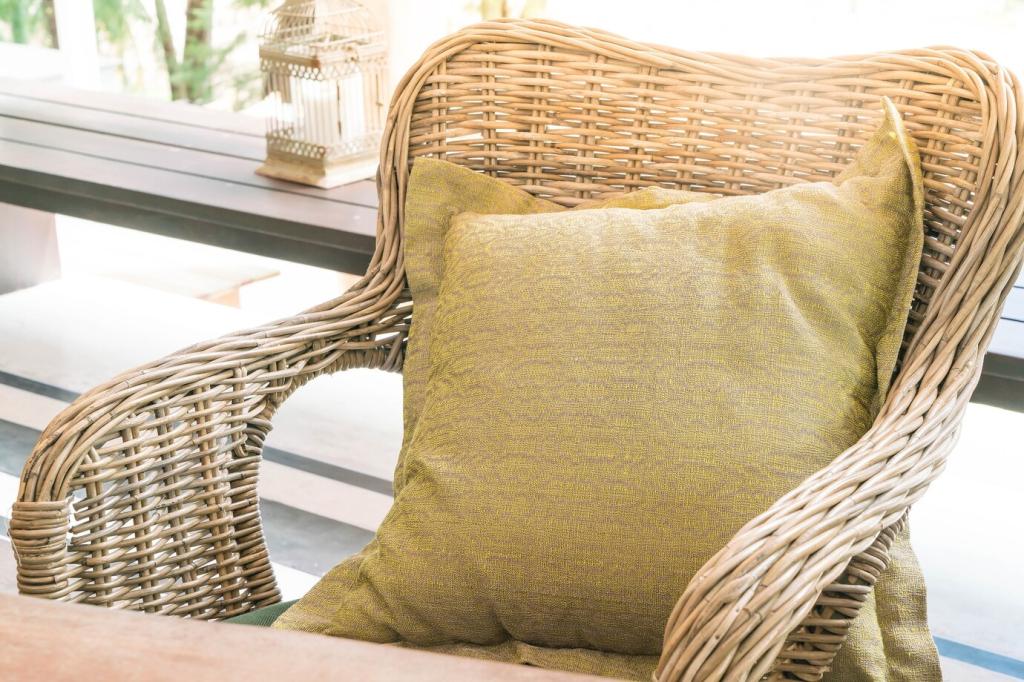 Aus PET-Flaschen geschnittene Bänder oder recycelte Seile ergeben atmungsaktive Rückenlehnen. Sie sind wetterfest, austauschbar und setzen grafische Akzente. Welche Flechtmuster würdest du ausprobieren? Teile Skizzen und Erfahrungen!